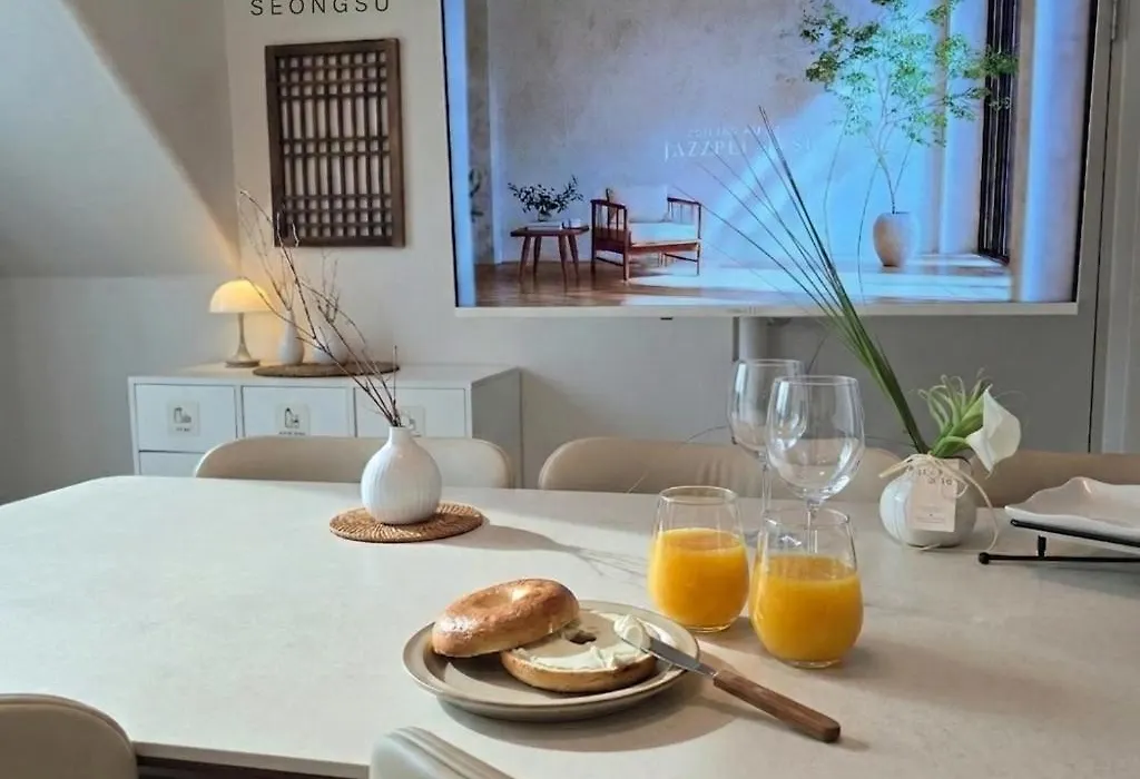 Open Sale# 성수역 도보6분 # K-Brooklyn Seongsu # 6Min Walk To Seongsu Station # Yeonmujang-Gil# Lux 3Br 4Beds # Jamsil #Lotte World Tower#Gangnam#Coex#Kspo apartment offers a fully equipped kitchen, as well as comforts like an air conditioner and a washing machine. The accommodation features a bathroom with a dryer, bath sheets, and slippers. Furthermore, a separate toilet, a shower, and a washing machine is available.